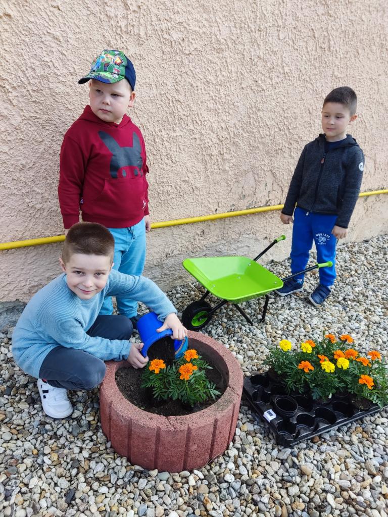 S príchodom jari sme si upravili a skrášlili náš školský dvor aj výsadbou kvetín.